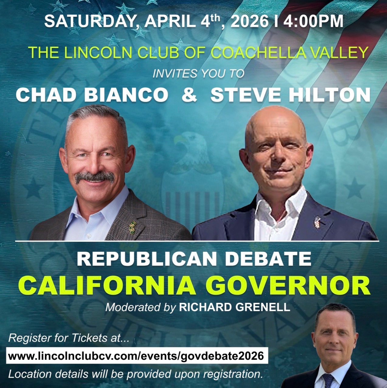 The Lincoln Club of Coachella Valley’s vision for our country is one where taxes are low, government is right-sized and accountable, children receive a world-class education, regulations are reasonable, and the rule of law is enforced.